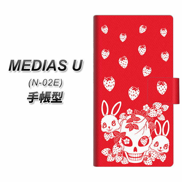 docomo MEDIAS U N-02E スマホケース手帳型/レザー/ケース / カバー【AG838 苺兎(赤)】(メディアスU/N02E/スマホケース/手帳式)