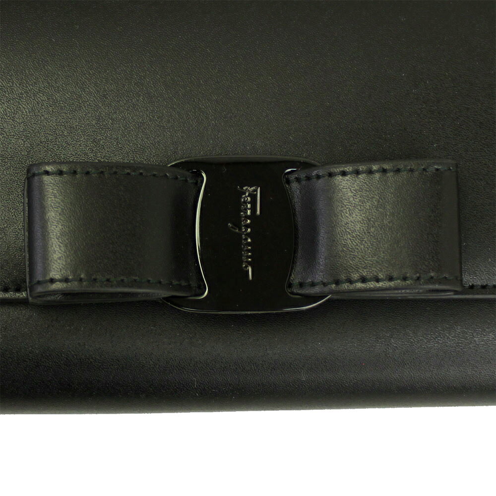 フェラガモ 財布 レザー ブラック 22D324 FERRAGAMO 三つ折り 長財布 ヴァラ・リボン 内側ピンク 22D324 0691367 2018-19秋冬新作
