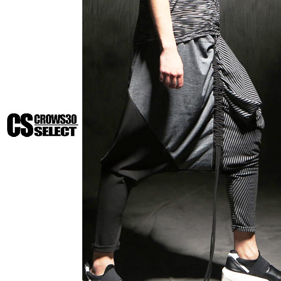 サルエルパンツ メンズ インポート 変形 パンツ ストライプ 縦縞 ボーダー 横縞 スカート男子 春 夏 新作 黒 ブラック ボトムス サロン系 きれい目 お兄系 ホスト V系 ビジュアル系 モード系 ビター系 BITTER系 衣装 ファッション スタイル
