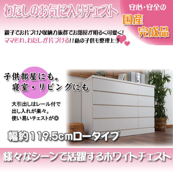 ホワイトチェスト ロータイプ 【送料無料】(衣類収納 タンス 箪笥 たんす 引き出し 木製 リビング 子供部屋) 楽天