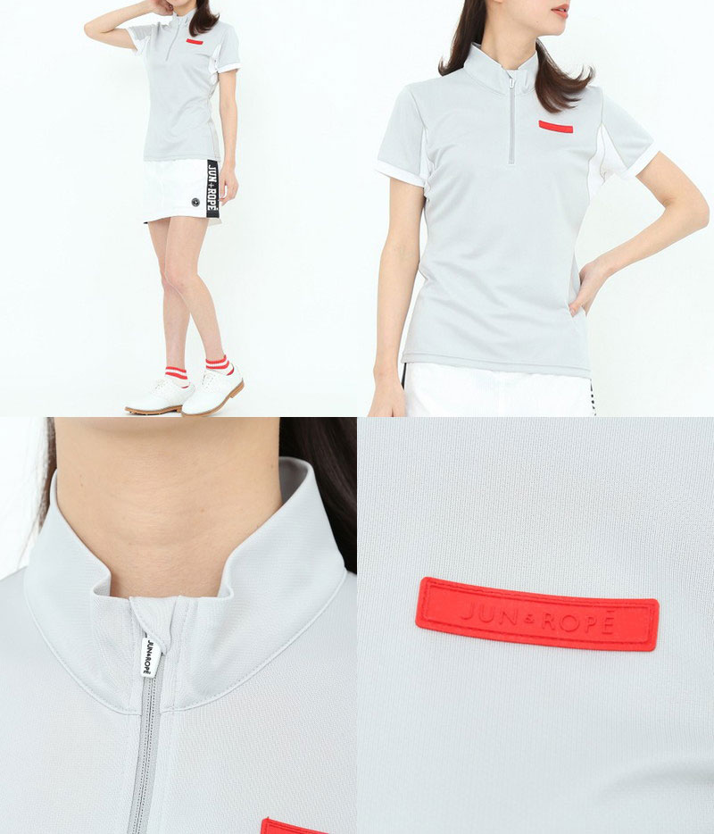 【コンビニ受取対応商品】 レディース商品詳細 ブランド名 ジュン&ロペ ジュンアンドロペ JUN&ROPE 商品名 ポロシャツ 半袖 ハイネックシャツ ハーフジップシャツ UVカット ストレッチ 吸水 速乾 バイカラー モノトーン配色 ラバーロゴワッペン メーカー希望小売価格 17280円(税込) 表記サイズ S(S) M(M) L(L) メーカー対応サイズ S 胸囲77〜82cm M 胸囲80〜85cm L 胸囲83〜88cm 実寸サイズ S(S) 身幅44cm 肩幅36cm 着丈57.5cm M(M) 身幅46cm 肩幅37cm 着丈59cm L(L) 身幅48cm 肩幅38cm 着丈60cm 実寸サイズ計測部位詳細はこちらのイラストページでご確認くださいませ。