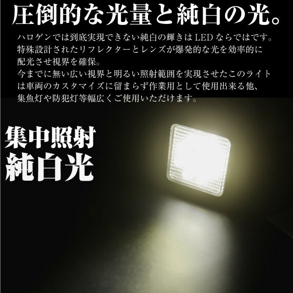 LED 投光器 ワークライト 作業灯 48W 角型 2個 スクエアタイプ 防水 防塵 12V 24V 集中 照射 3600lm 純白光 6500K 爆光 フォグランプ フォグライト 集魚灯 LEDライト _45300