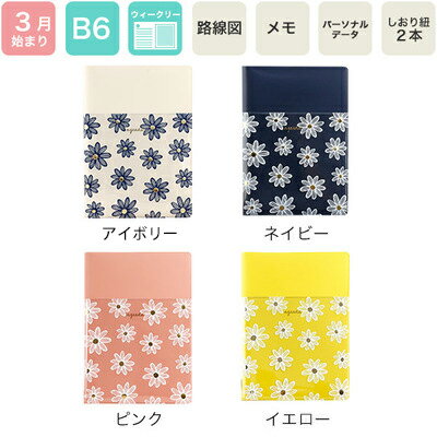 ■サイズ カバー W134mm × H187mm中面 W128 × H182mm■素材:塩ビカバー■本文:192ページ ■ B6 ウィークリーホリゾンタルtype4 ページ構成○2018・2019 年間カレンダー↓○2018 イヤースケジュール↓○月間予定表(2018年3月〜2019年5月まで)↓○週間予定表(2018年3月〜2019年5月まで)↓◯ノート(12ページ)↓○東京・大阪近郊路線図(カラー)↓○東京・大阪・京都・神戸・札幌・仙台 名古屋・福岡 地下鉄路線図(カラー)↓○パーソナルデータFlower Pocket フラワーポケット クリアポケットにプリントした花柄が春らしい一冊。